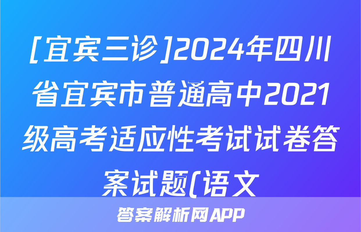 [宜宾三诊]2024年四川省宜宾市普通高中2021级高考适应性考试试卷答案试题(语文)正在持续更新,目前2024-2025衡中同卷答案网为大家整理了相关试题及答案,供大家查缺补漏,高效提升成绩。