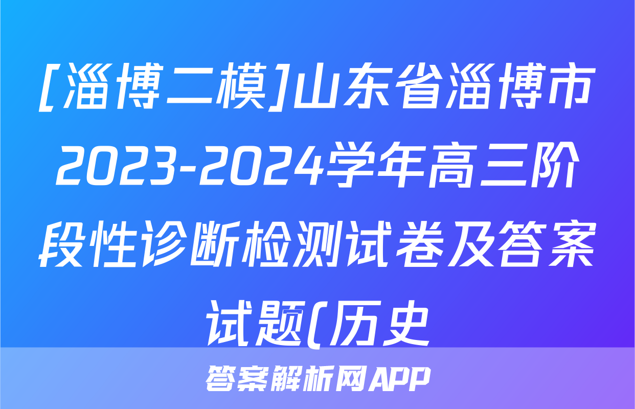 [淄博二模]山东省淄博市2023-2024学年高三阶段性诊断检测试卷及答案试题(历史)正在持续更新,目前2024-2025衡中同卷答案网为大家整理了相关试题及答案,供大家查缺补漏,高效提升成绩。