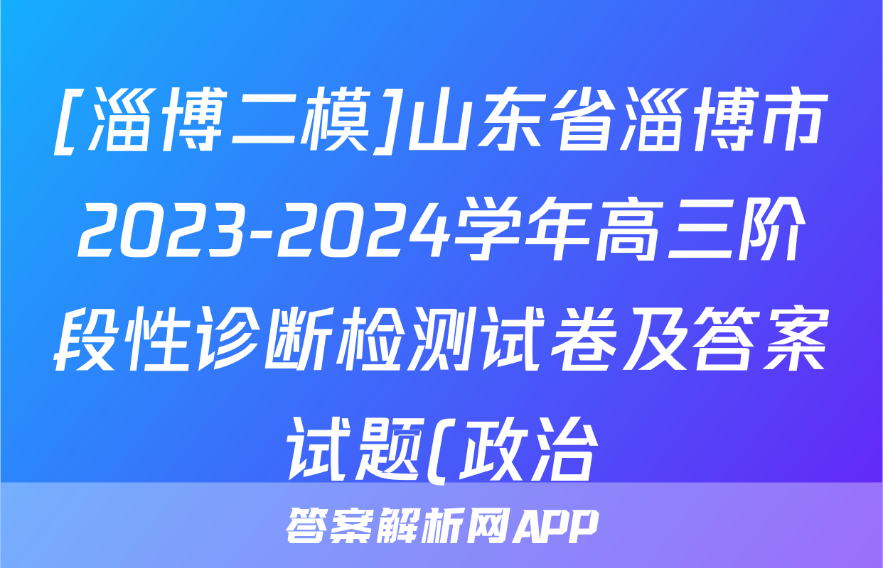 [淄博二模]山东省淄博市2023-2024学年高三阶段性诊断检测试卷及答案试题(政治)正在持续更新,目前2024-2025衡中同卷答案网为大家整理了相关试题及答案,供大家查缺补漏,高效提升成绩。