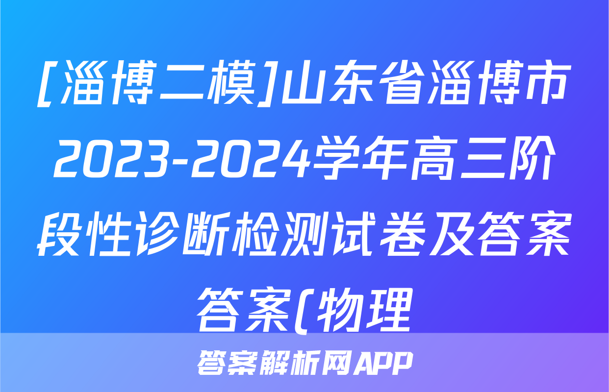 [淄博二模]山东省淄博市2023-2024学年高三阶段性诊断检测试卷及答案答案(物理)正在持续更新,目前2024-2025衡中同卷答案网为大家整理了相关试题及答案,供大家查缺补漏,高效提升成绩。
