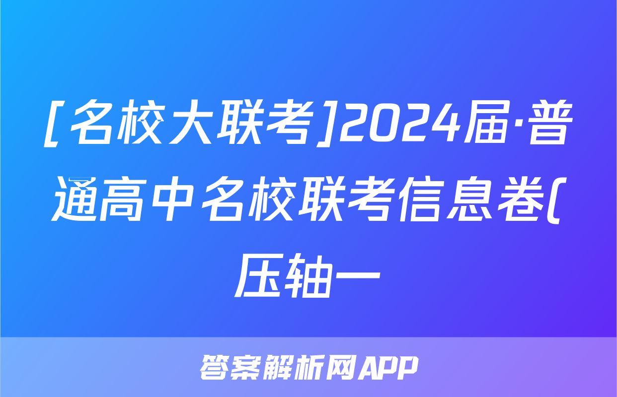 [名校大联考]2024届·普通高中名校联考信息卷(压轴一)试题(地理)正在持续更新,目前2024-2025衡中同卷答案网为大家整理了相关试题及答案,供大家查缺补漏,高效提升成绩。