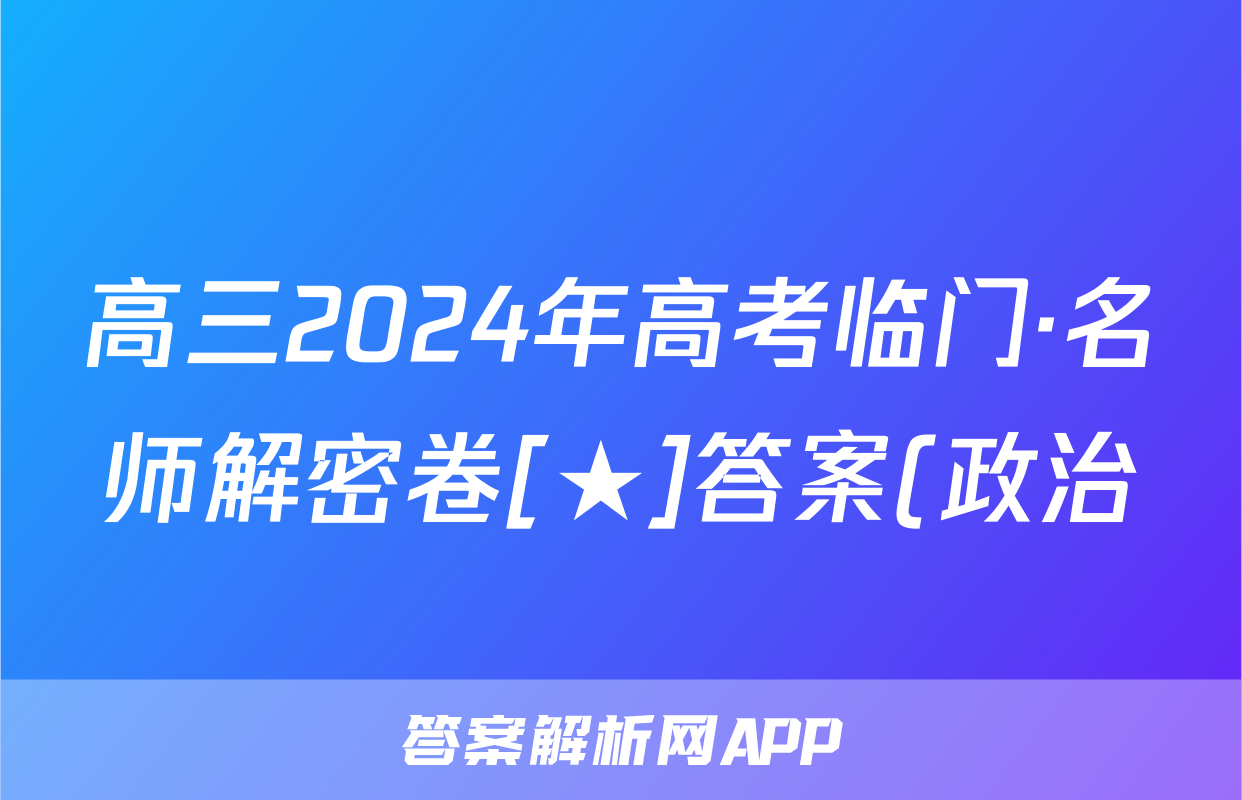 高三2024年高考临门·名师解密卷[★]答案(政治)正在持续更新,目前2024-2025衡中同卷答案网为大家整理了相关试题及答案,供大家查缺补漏,高效提升成绩。