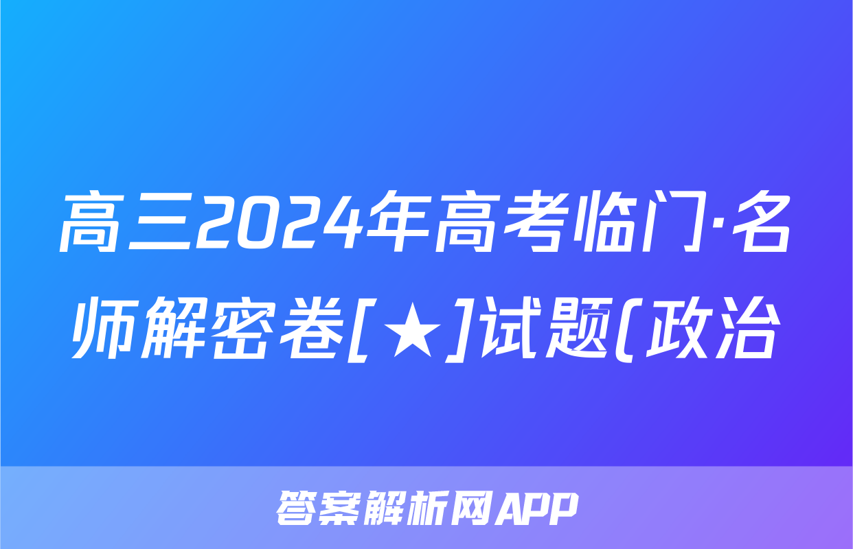 高三2024年高考临门·名师解密卷[★]试题(政治)正在持续更新,目前2024-2025衡中同卷答案网为大家整理了相关试题及答案,供大家查缺补漏,高效提升成绩。