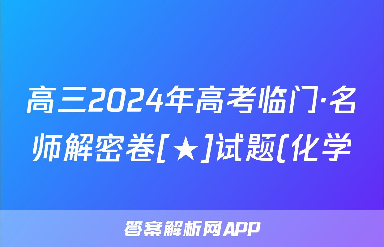 高三2024年高考临门·名师解密卷[★]试题(化学)正在持续更新,目前2024-2025衡中同卷答案网为大家整理了相关试题及答案,供大家查缺补漏,高效提升成绩。