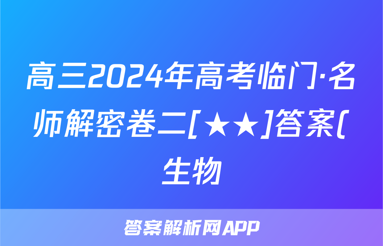高三2024年高考临门·名师解密卷二[★★]答案(生物)正在持续更新,目前2024-2025衡中同卷答案网为大家整理了相关试题及答案,供大家查缺补漏,高效提升成绩。