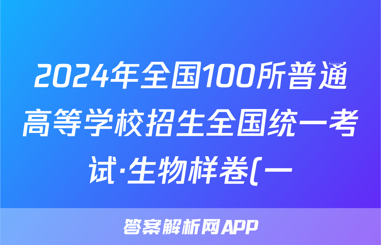 2024年全国100所普通高等学校招生全国统一考试·生物样卷(一)1[24·(新高考)高考样卷·生物·Y]试题正在持续更新,目前2024-2025衡中同卷答案网为大家整理了相关试题及答案,供大家查缺补漏,高效提升成绩。