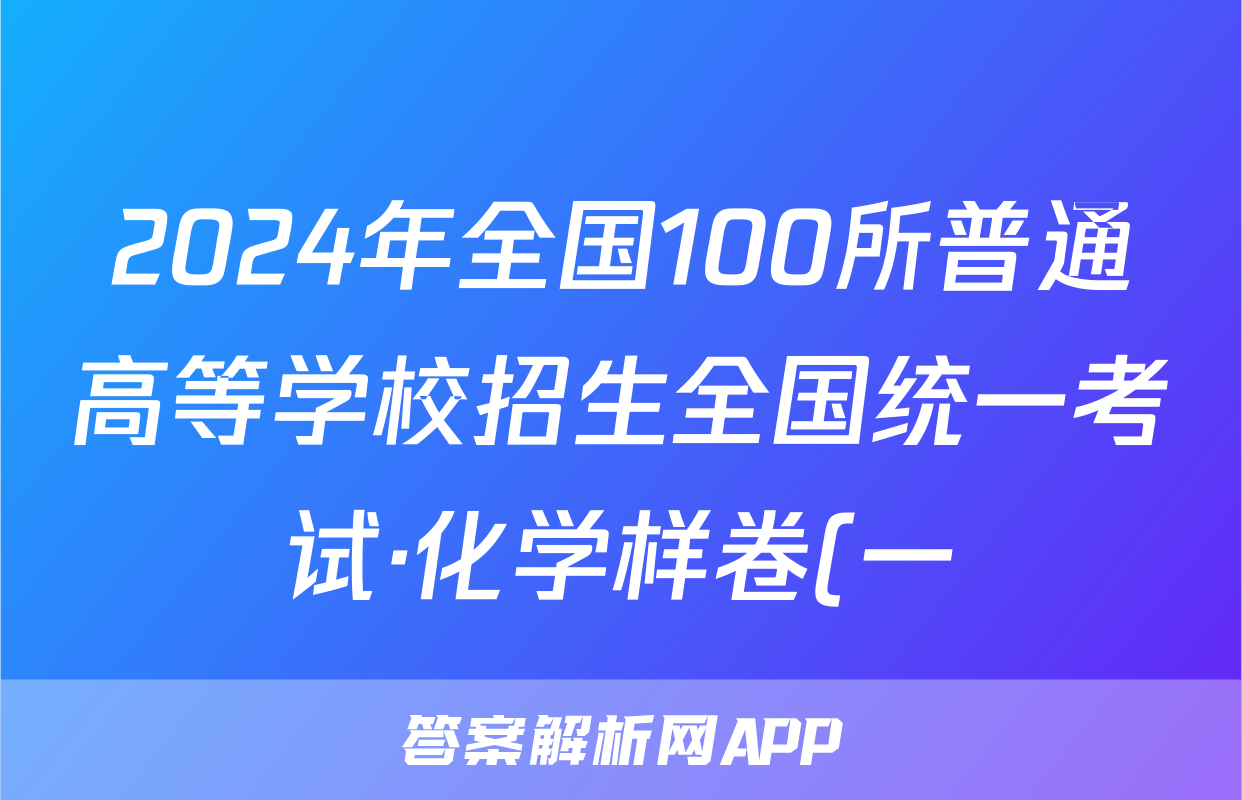 2024年全国100所普通高等学校招生全国统一考试·化学样卷(一)1[24·(新高考)高考样卷·化学·Y]试题正在持续更新,目前2024-2025衡中同卷答案网为大家整理了相关试题及答案,供大家查缺补漏,高效提升成绩。