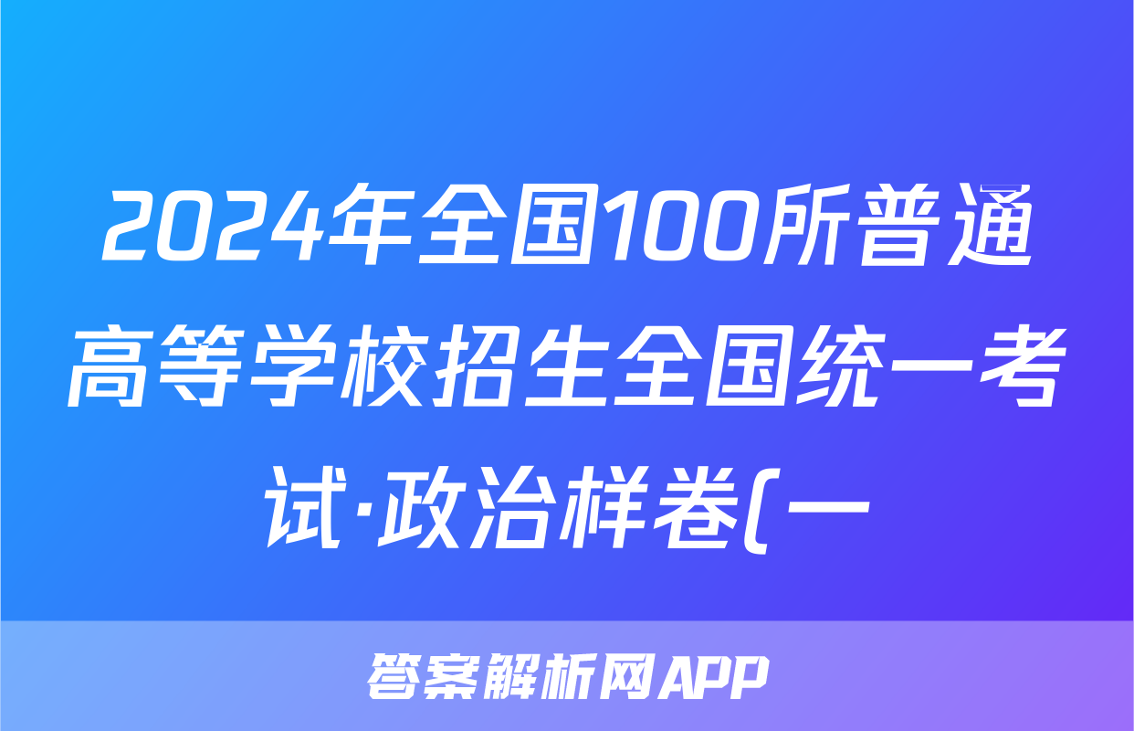 2024年全国100所普通高等学校招生全国统一考试·政治样卷(一)1[24·(新高考)高考样卷·政治·Y]试题正在持续更新,目前2024-2025衡中同卷答案网为大家整理了相关试题及答案,供大家查缺补漏,高效提升成绩。