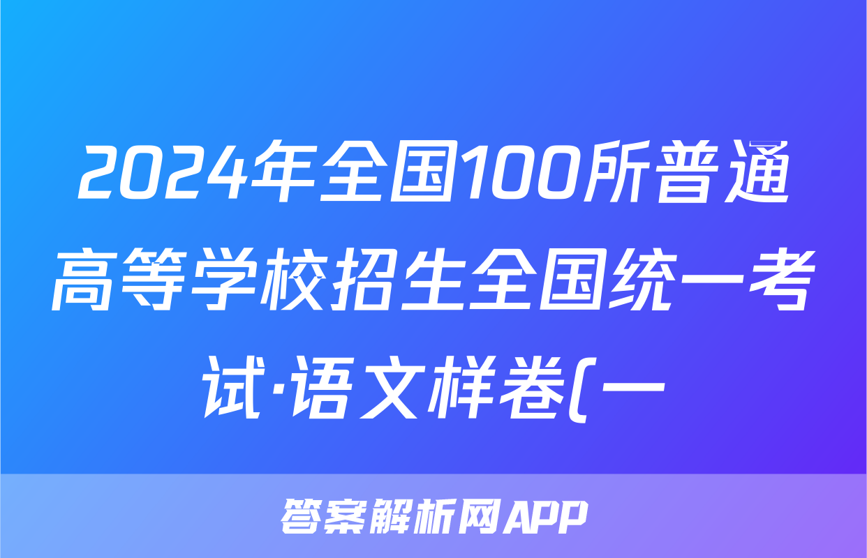 2024年全国100所普通高等学校招生全国统一考试·语文样卷(一)1[24·(新高考)高考样卷·语文·Y]试题正在持续更新,目前2024-2025衡中同卷答案网为大家整理了相关试题及答案,供大家查缺补漏,高效提升成绩。