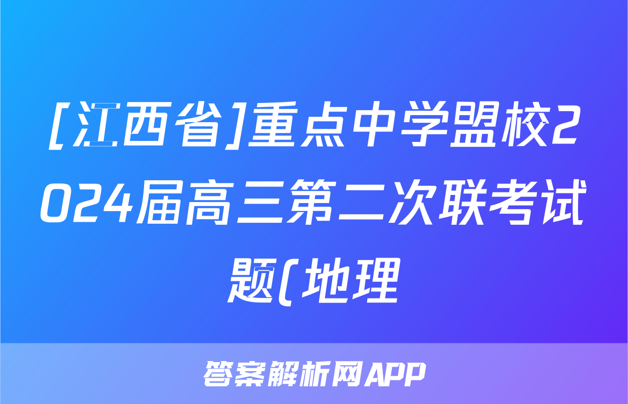 [江西省]重点中学盟校2024届高三第二次联考试题(地理)正在持续更新,目前2024-2025衡中同卷答案网为大家整理了相关试题及答案,供大家查缺补漏,高效提升成绩。