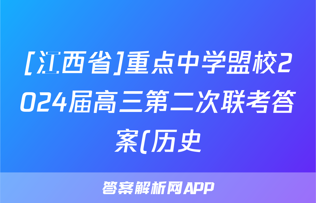 [江西省]重点中学盟校2024届高三第二次联考答案(历史)正在持续更新,目前2024-2025衡中同卷答案网为大家整理了相关试题及答案,供大家查缺补漏,高效提升成绩。