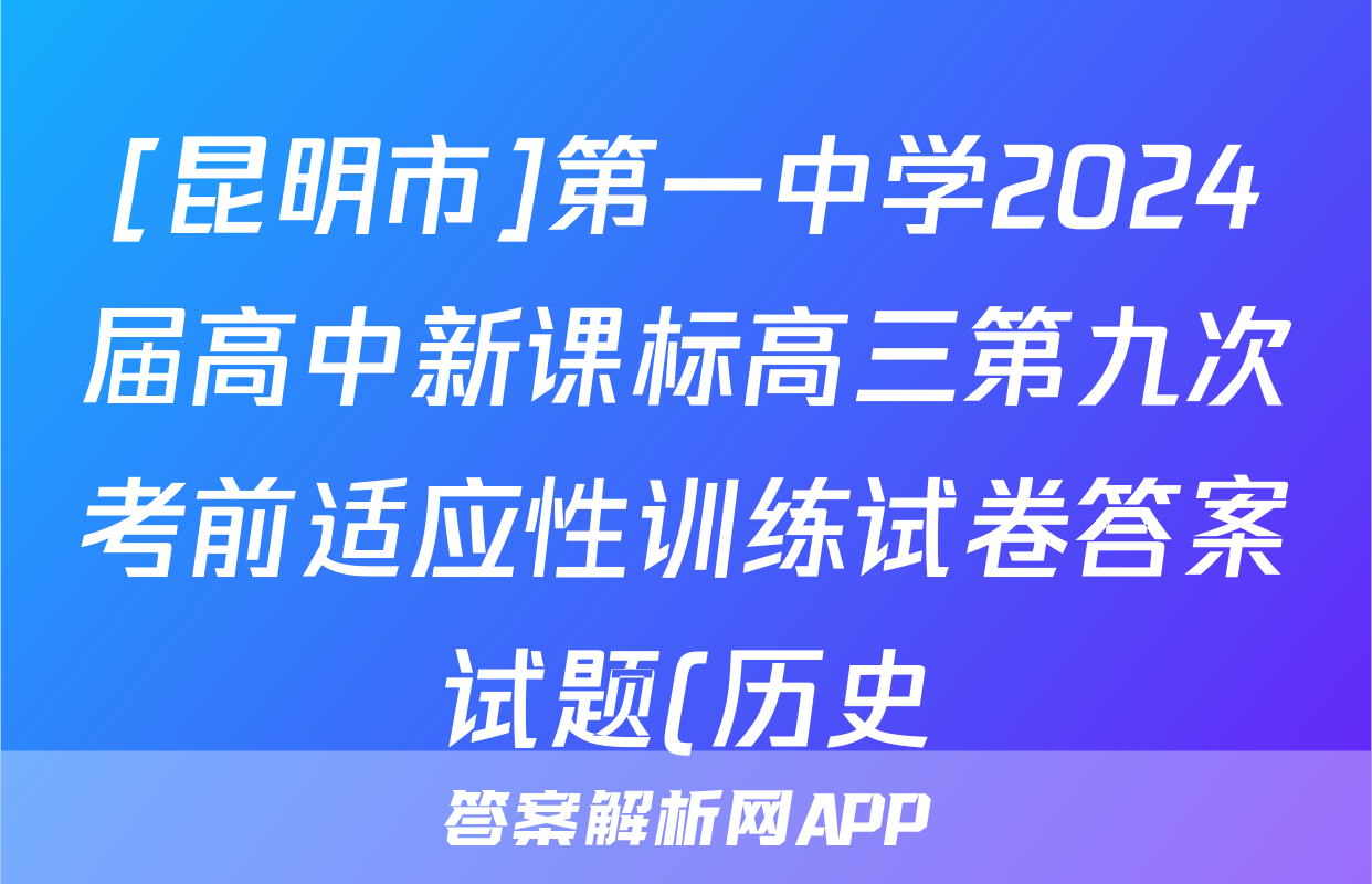 [昆明市]第一中学2024届高中新课标高三第九次考前适应性训练试卷答案试题(历史)正在持续更新,目前2024-2025衡中同卷答案网为大家整理了相关试题及答案,供大家查缺补漏,高效提升成绩。