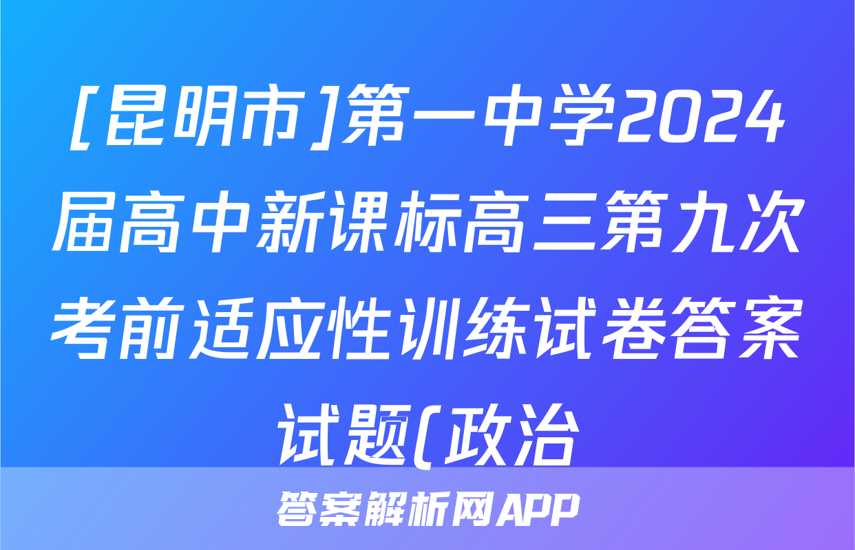 [昆明市]第一中学2024届高中新课标高三第九次考前适应性训练试卷答案试题(政治)正在持续更新,目前2024-2025衡中同卷答案网为大家整理了相关试题及答案,供大家查缺补漏,高效提升成绩。