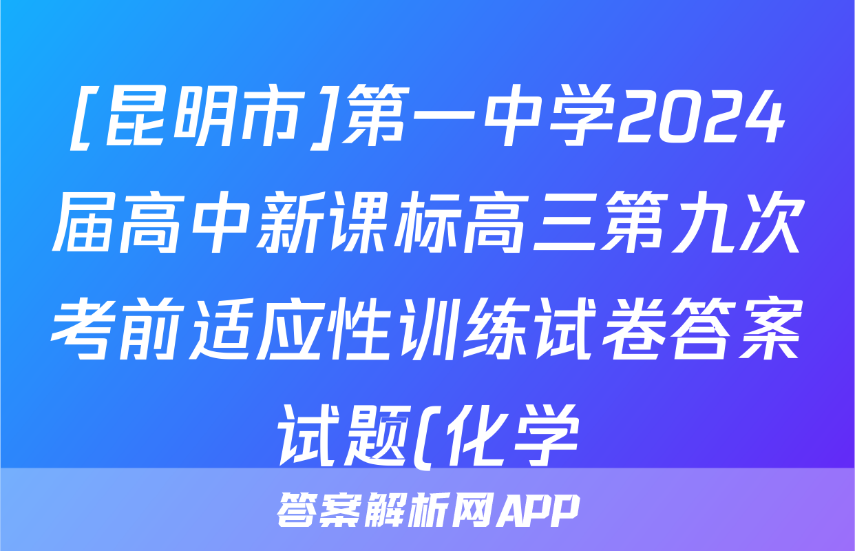 [昆明市]第一中学2024届高中新课标高三第九次考前适应性训练试卷答案试题(化学)正在持续更新,目前2024-2025衡中同卷答案网为大家整理了相关试题及答案,供大家查缺补漏,高效提升成绩。