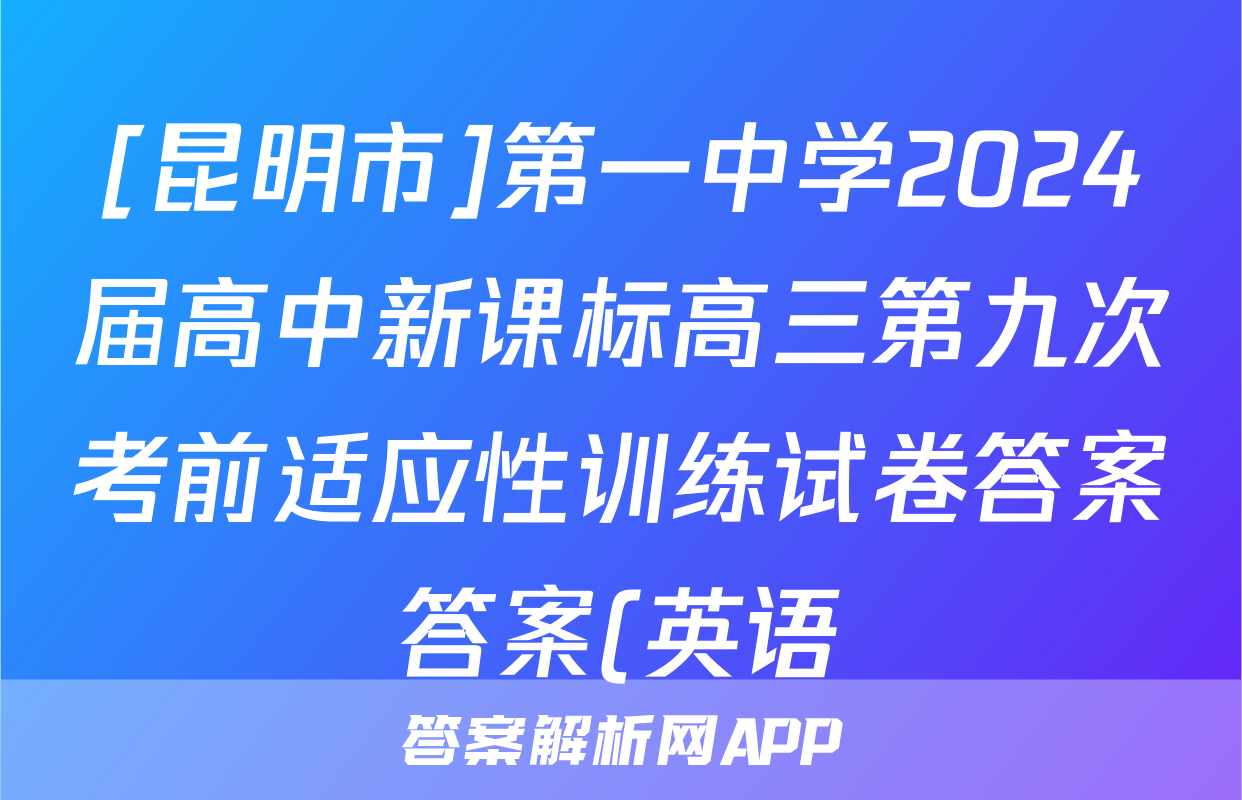 1、[昆明市]第一中学2024届高中新课标高三第九次考前适应性训练试卷答案答案(