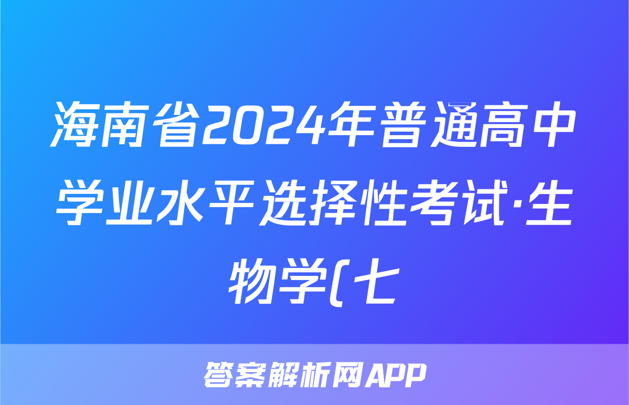 海南省2024年普通高中学业水平选择性考试·生物学(七)7[24·(新高考)ZX·MNJ·生物学·HAIN]答案正在持续更新,目前2024-2025衡中同卷答案网为大家整理了相关试题及答案,供大家查缺补漏,高效提升成绩。