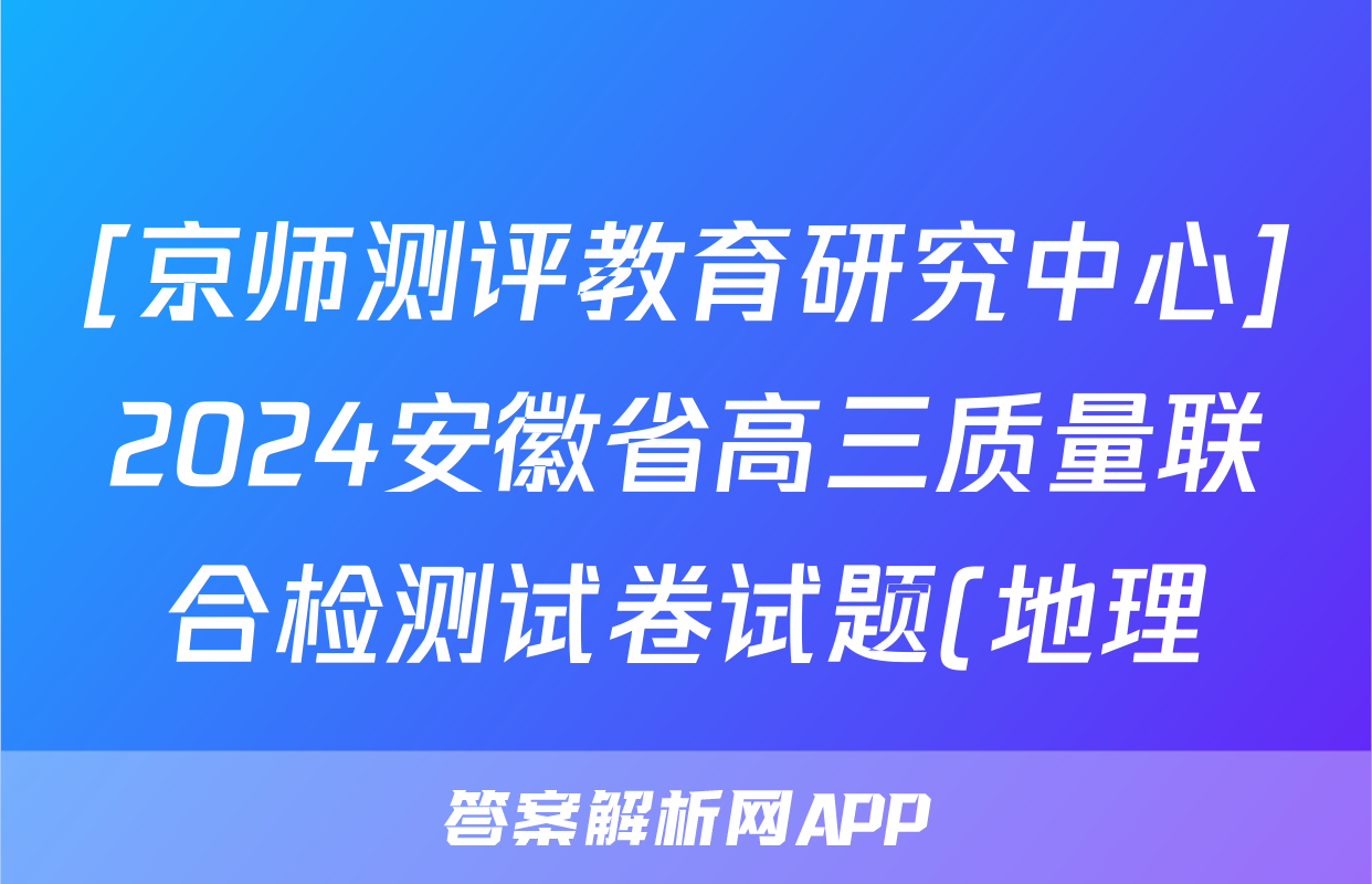 [京师测评教育研究中心]2024安徽省高三质量联合检测试卷试题(地理)正在持续更新,目前2024-2025衡中同卷答案网为大家整理了相关试题及答案,供大家查缺补漏,高效提升成绩。