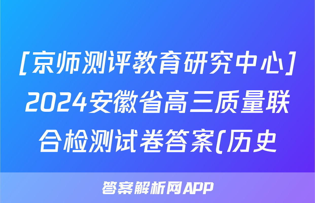 [京师测评教育研究中心]2024安徽省高三质量联合检测试卷答案(历史)正在持续更新,目前2024-2025衡中同卷答案网为大家整理了相关试题及答案,供大家查缺补漏,高效提升成绩。