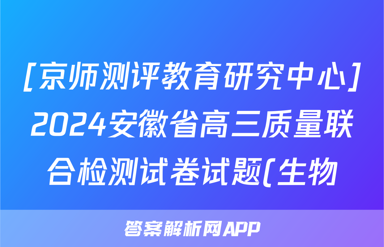 [京师测评教育研究中心]2024安徽省高三质量联合检测试卷试题(生物)正在持续更新,目前2024-2025衡中同卷答案网为大家整理了相关试题及答案,供大家查缺补漏,高效提升成绩。