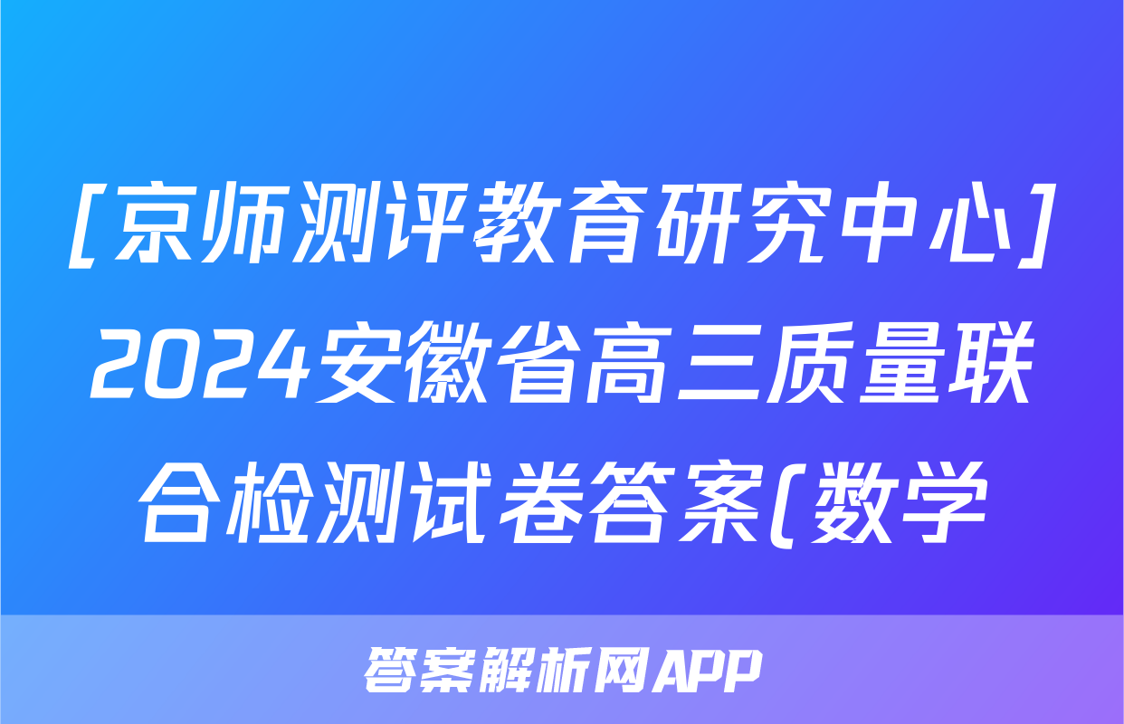 [京师测评教育研究中心]2024安徽省高三质量联合检测试卷答案(数学)正在持续更新,目前2024-2025衡中同卷答案网为大家整理了相关试题及答案,供大家查缺补漏,高效提升成绩。