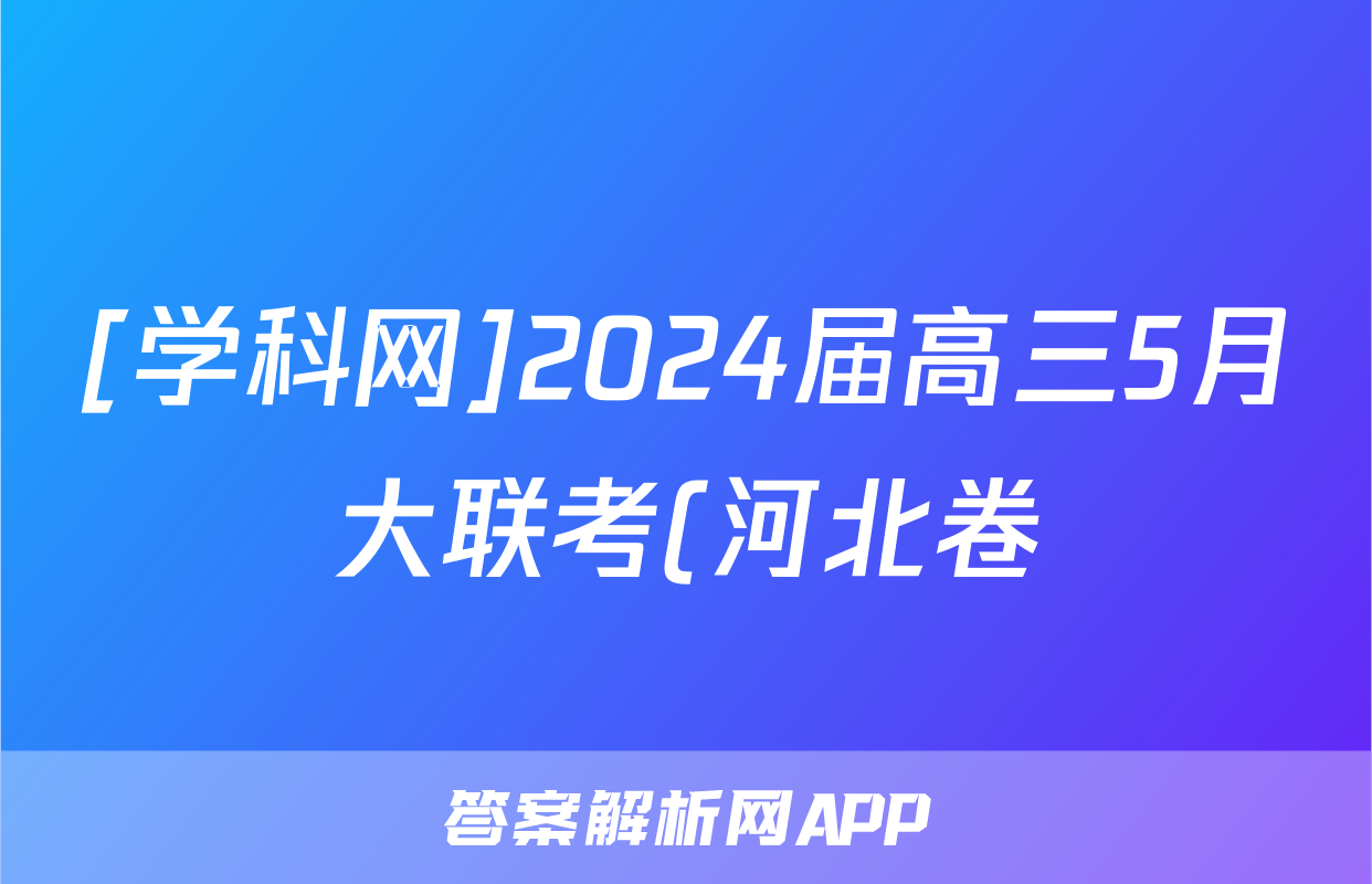 [学科网]2024届高三5月大联考(河北卷)化学试题正在持续更新,目前2024-2025衡中同卷答案网为大家整理了相关试题及答案,供大家查缺补漏,高效提升成绩。