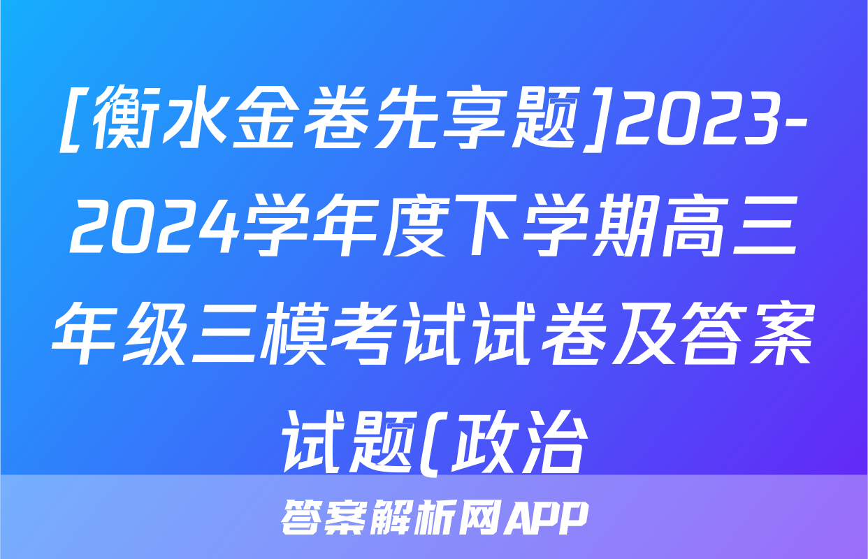 [衡水金卷先享题]2023-2024学年度下学期高三年级三模考试试卷及答案试题(政治)正在持续更新,目前2024-2025衡中同卷答案网为大家整理了相关试题及答案,供大家查缺补漏,高效提升成绩。