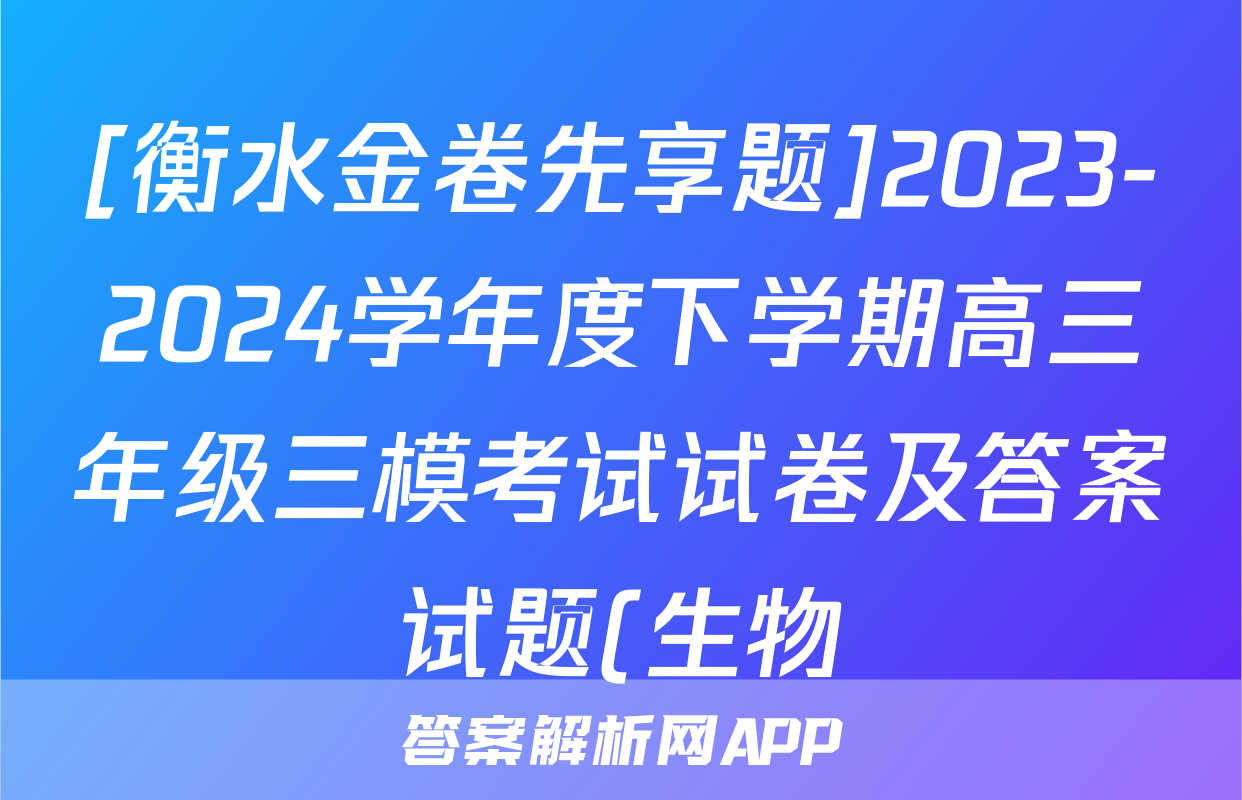 [衡水金卷先享题]2023-2024学年度下学期高三年级三模考试试卷及答案试题(生物)正在持续更新,目前2024-2025衡中同卷答案网为大家整理了相关试题及答案,供大家查缺补漏,高效提升成绩。