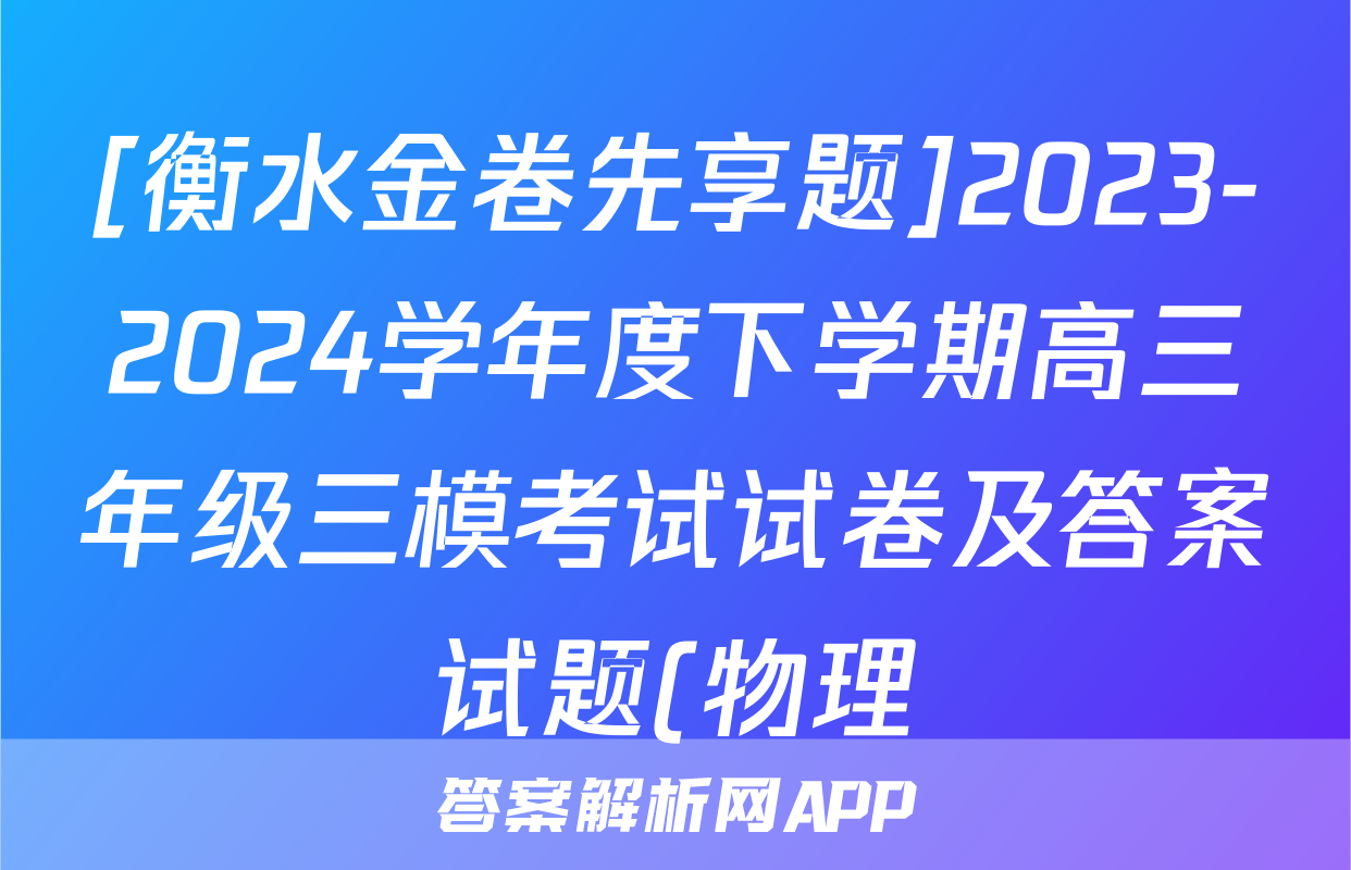 [衡水金卷先享题]2023-2024学年度下学期高三年级三模考试试卷及答案试题(物理)正在持续更新,目前2024-2025衡中同卷答案网为大家整理了相关试题及答案,供大家查缺补漏,高效提升成绩。