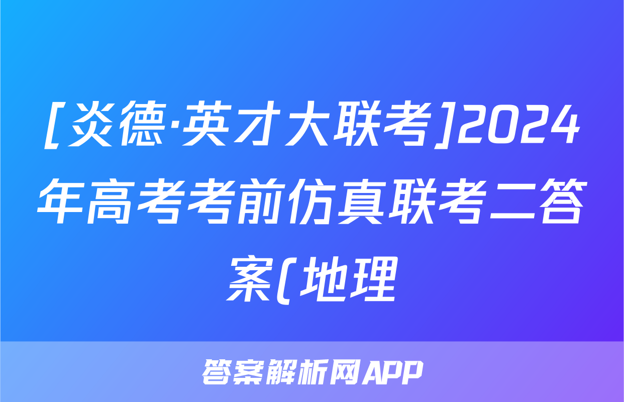 [炎德·英才大联考]2024年高考考前仿真联考二答案(地理)正在持续更新,目前2024-2025衡中同卷答案网为大家整理了相关试题及答案,供大家查缺补漏,高效提升成绩。