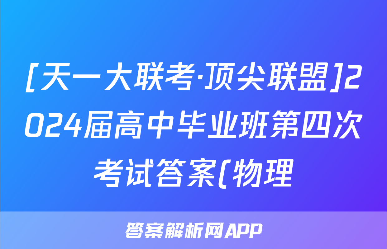 [天一大联考·顶尖联盟]2024届高中毕业班第四次考试答案(物理)正在持续更新,目前2024-2025衡中同卷答案网为大家整理了相关试题及答案,供大家查缺补漏,高效提升成绩。