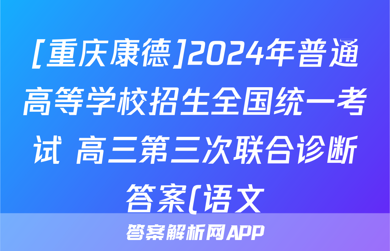 [重庆康德]2024年普通高等学校招生全国统一考试 高三第三次联合诊断答案(语文)正在持续更新,目前2024-2025衡中同卷答案网为大家整理了相关试题及答案,供大家查缺补漏,高效提升成绩。