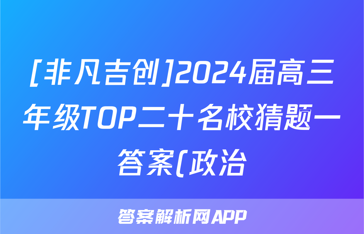 [非凡吉创]2024届高三年级TOP二十名校猜题一答案(政治)正在持续更新,目前2024-2025衡中同卷答案网为大家整理了相关试题及答案,供大家查缺补漏,高效提升成绩。