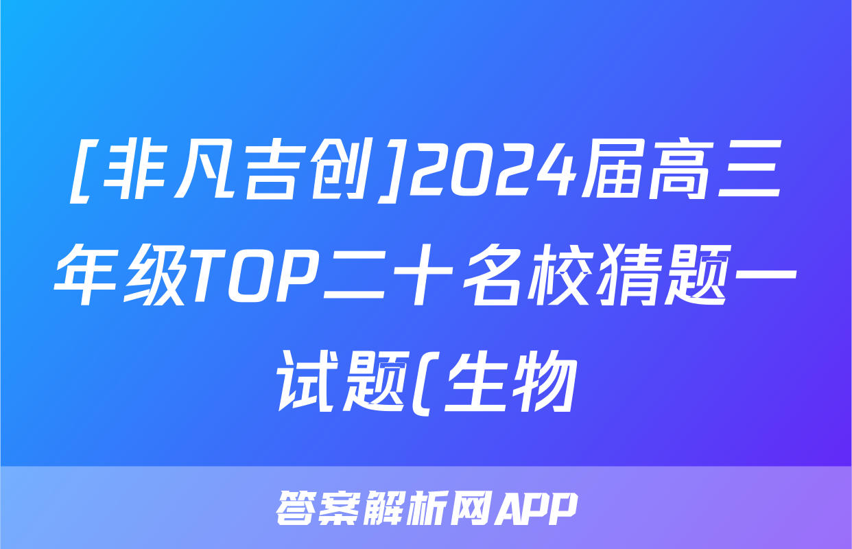 [非凡吉创]2024届高三年级TOP二十名校猜题一试题(生物)正在持续更新,目前2024-2025衡中同卷答案网为大家整理了相关试题及答案,供大家查缺补漏,高效提升成绩。