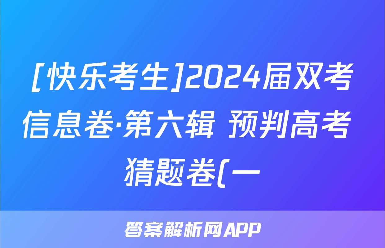 [快乐考生]2024届双考信息卷·第六辑 预判高考 猜题卷(一)1试卷及答案试题(英语)正在持续更新,目前2024-2025衡中同卷答案网为大家整理了相关试题及答案,供大家查缺补漏,高效提升成绩。