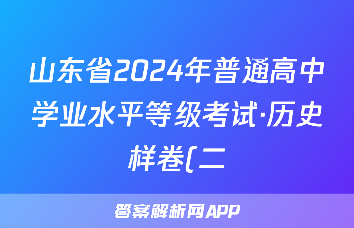 山东省2024年普通高中学业水平等级考试·历史样卷(二)2[24·(新高考)高考样卷·历史·SD]试题正在持续更新,目前2024-2025衡中同卷答案网为大家整理了相关试题及答案,供大家查缺补漏,高效提升成绩。