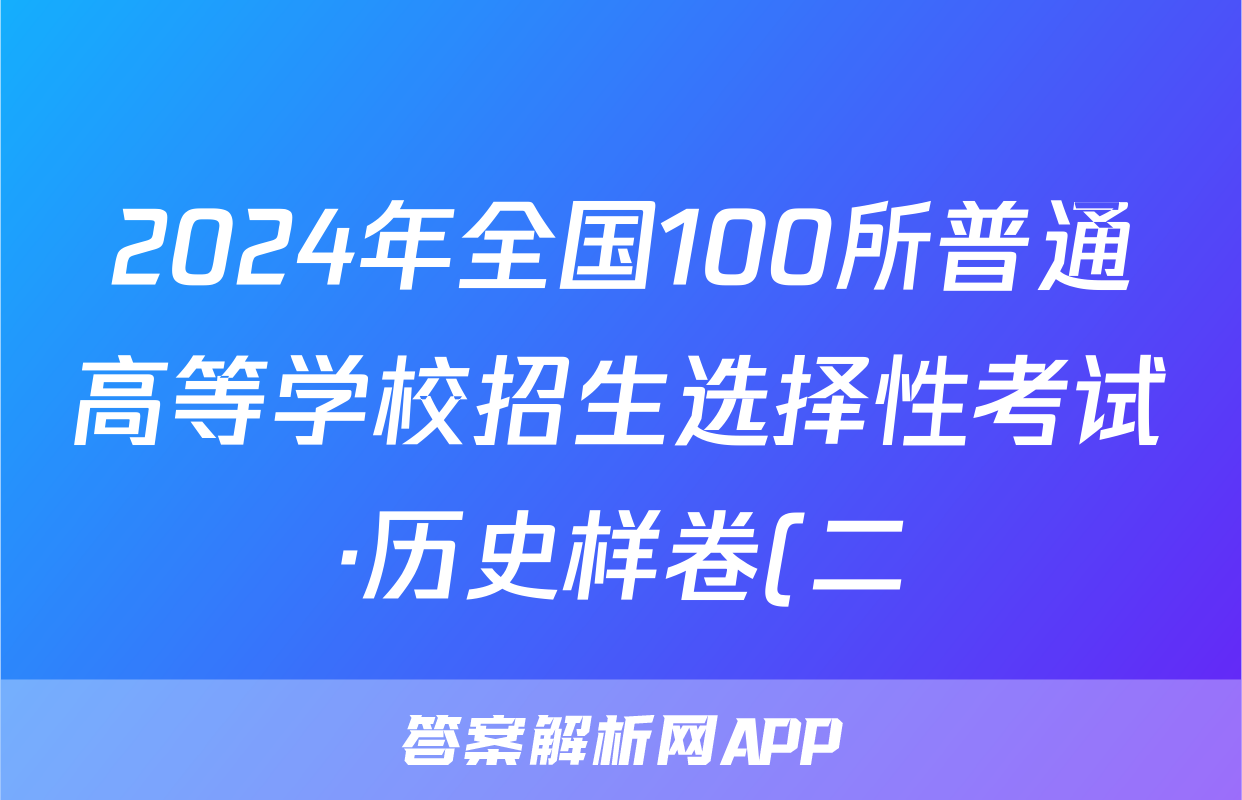 2024年全国100所普通高等学校招生选择性考试·历史样卷(二)2[24·(新高考)高考样卷·历史·JH]试题正在持续更新,目前2024-2025衡中同卷答案网为大家整理了相关试题及答案,供大家查缺补漏,高效提升成绩。