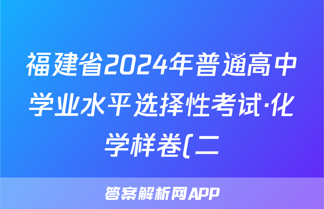 福建省2024年普通高中学业水平选择性考试·化学样卷(二)2[24·(新高考)高考样卷·化学·FJ]答案正在持续更新,目前2024-2025衡中同卷答案网为大家整理了相关试题及答案,供大家查缺补漏,高效提升成绩。