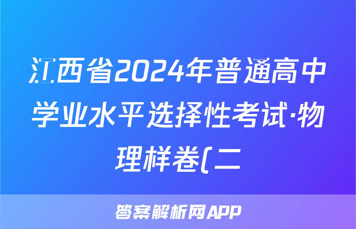 江西省2024年普通高中学业水平选择性考试·物理样卷(二)2[24·(新高考)高考样卷·物理·JX]答案正在持续更新,目前2024-2025衡中同卷答案网为大家整理了相关试题及答案,供大家查缺补漏,高效提升成绩。