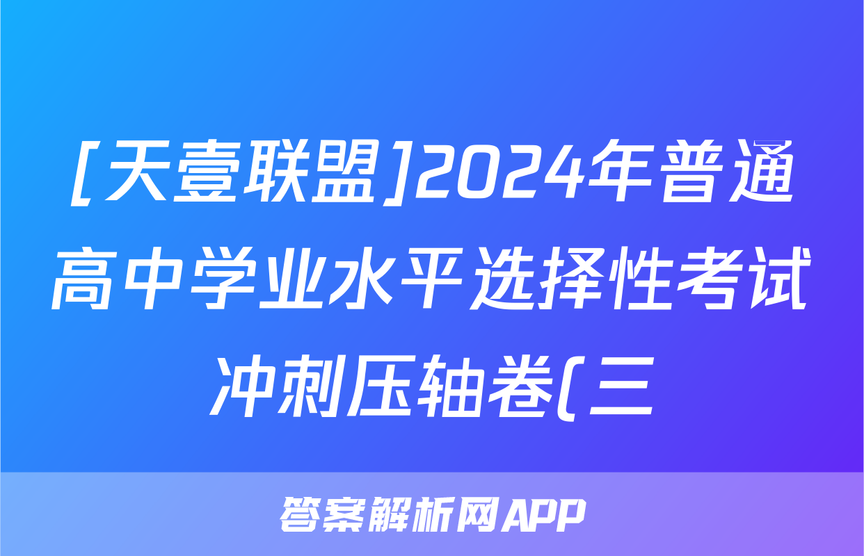 1、天壹联盟 2024年普通高中学业水选择性考试冲刺压轴卷(三)3试卷答案试题(历史)