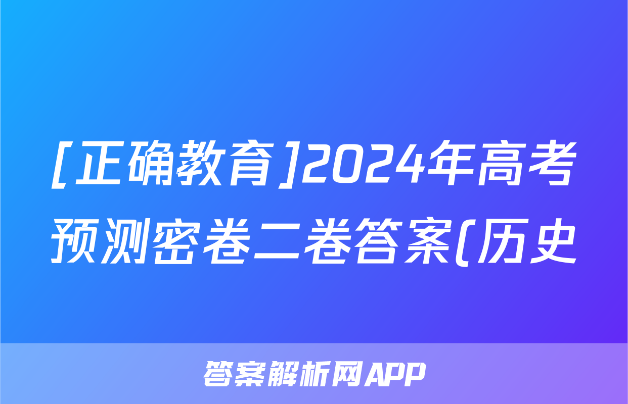 [正确教育]2024年高考预测密卷二卷答案(历史)正在持续更新,目前2024-2025衡中同卷答案网为大家整理了相关试题及答案,供大家查缺补漏,高效提升成绩。
