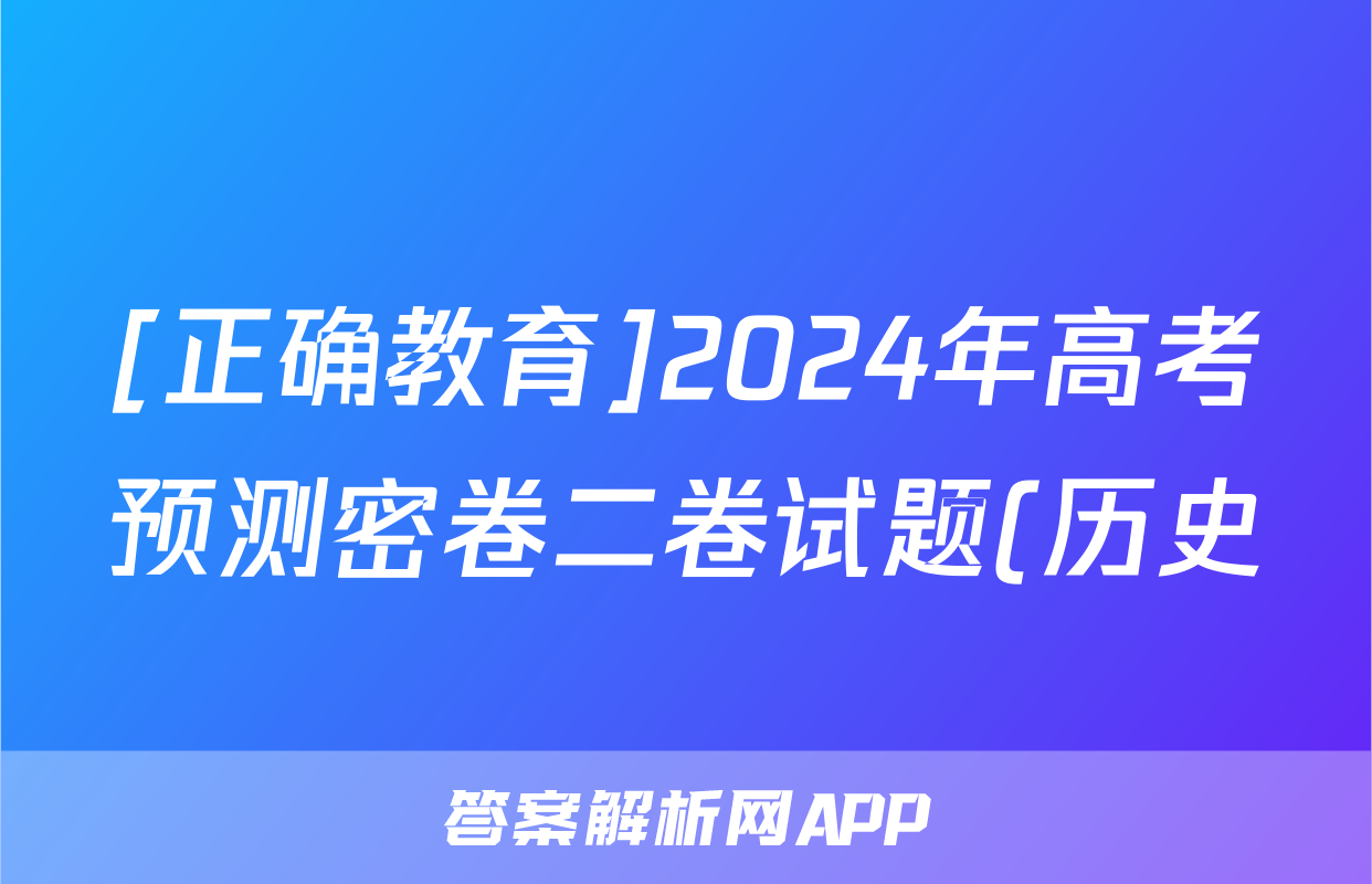 [正确教育]2024年高考预测密卷二卷试题(历史)正在持续更新,目前2024-2025衡中同卷答案网为大家整理了相关试题及答案,供大家查缺补漏,高效提升成绩。