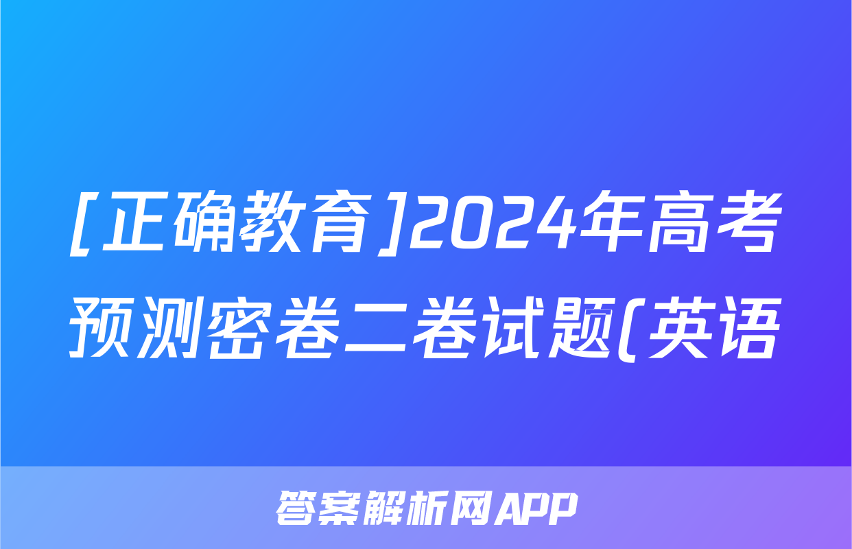 [正确教育]2024年高考预测密卷二卷试题(英语)正在持续更新,目前2024-2025衡中同卷答案网为大家整理了相关试题及答案,供大家查缺补漏,高效提升成绩。