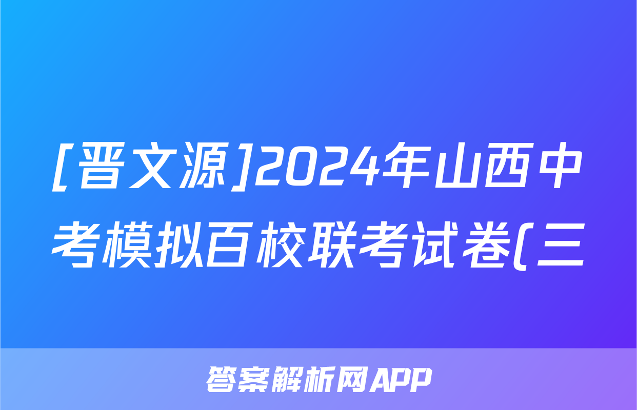 1、晋文源 2024年山西中考模拟百校联考试卷(三)3试题(历史)