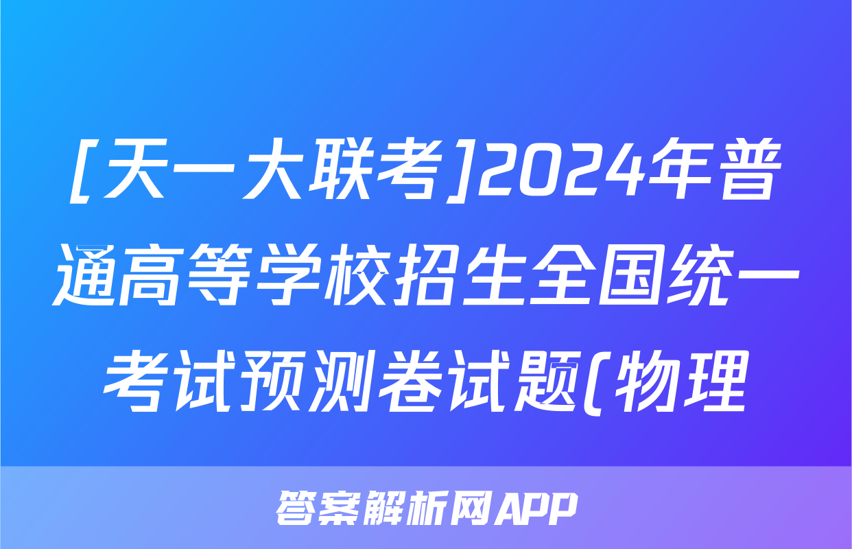[天一大联考]2024年普通高等学校招生全国统一考试预测卷试题(物理)正在持续更新,目前2024-2025衡中同卷答案网为大家整理了相关试题及答案,供大家查缺补漏,高效提升成绩。