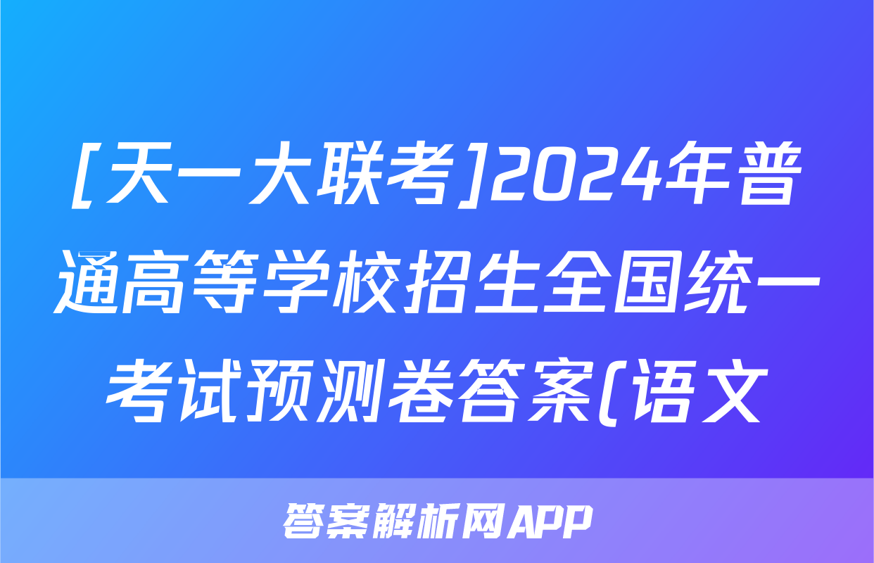 [天一大联考]2024年普通高等学校招生全国统一考试预测卷答案(语文)正在持续更新,目前2024-2025衡中同卷答案网为大家整理了相关试题及答案,供大家查缺补漏,高效提升成绩。