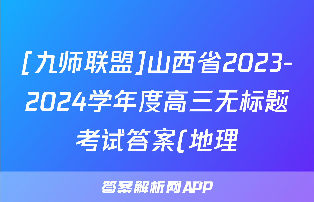 [九师联盟]山西省2023-2024学年度高三无标题考试答案(地理)正在持续更新,目前2024-2025衡中同卷答案网为大家整理了相关试题及答案,供大家查缺补漏,高效提升成绩。