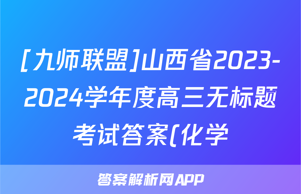 [九师联盟]山西省2023-2024学年度高三无标题考试答案(化学)正在持续更新,目前2024-2025衡中同卷答案网为大家整理了相关试题及答案,供大家查缺补漏,高效提升成绩。