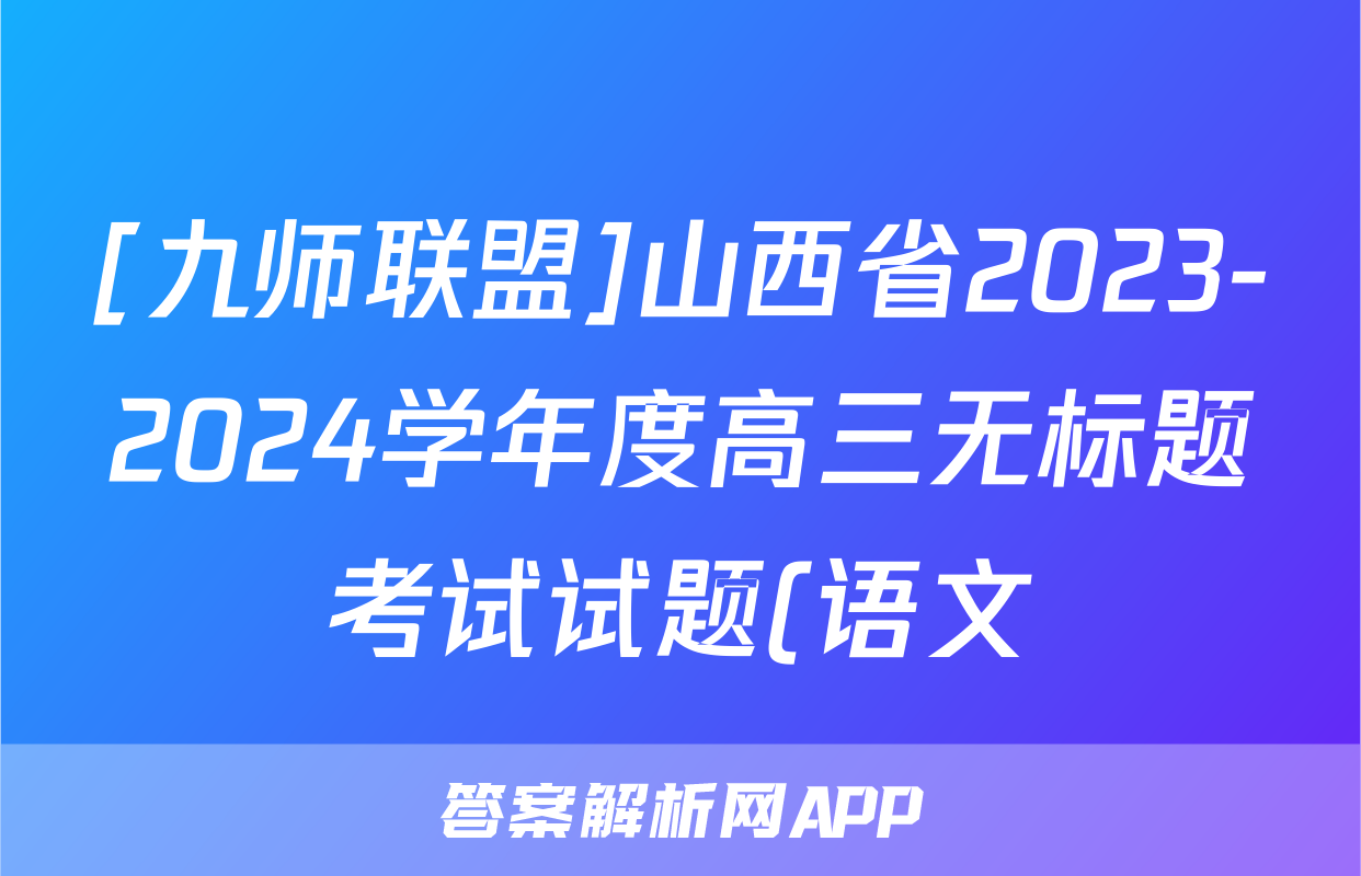 [九师联盟]山西省2023-2024学年度高三无标题考试试题(语文)正在持续更新,目前2024-2025衡中同卷答案网为大家整理了相关试题及答案,供大家查缺补漏,高效提升成绩。