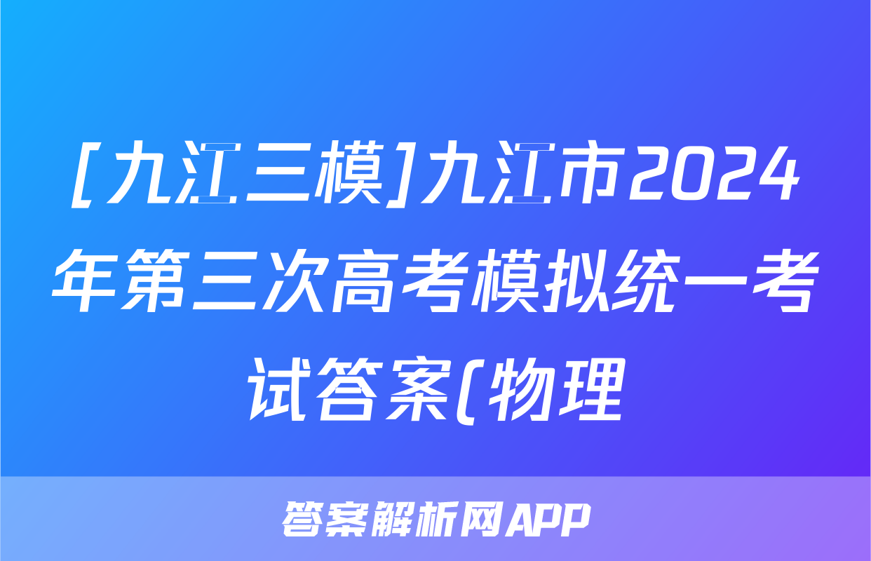 [九江三模]九江市2024年第三次高考模拟统一考试答案(物理)正在持续更新,目前2024-2025衡中同卷答案网为大家整理了相关试题及答案,供大家查缺补漏,高效提升成绩。