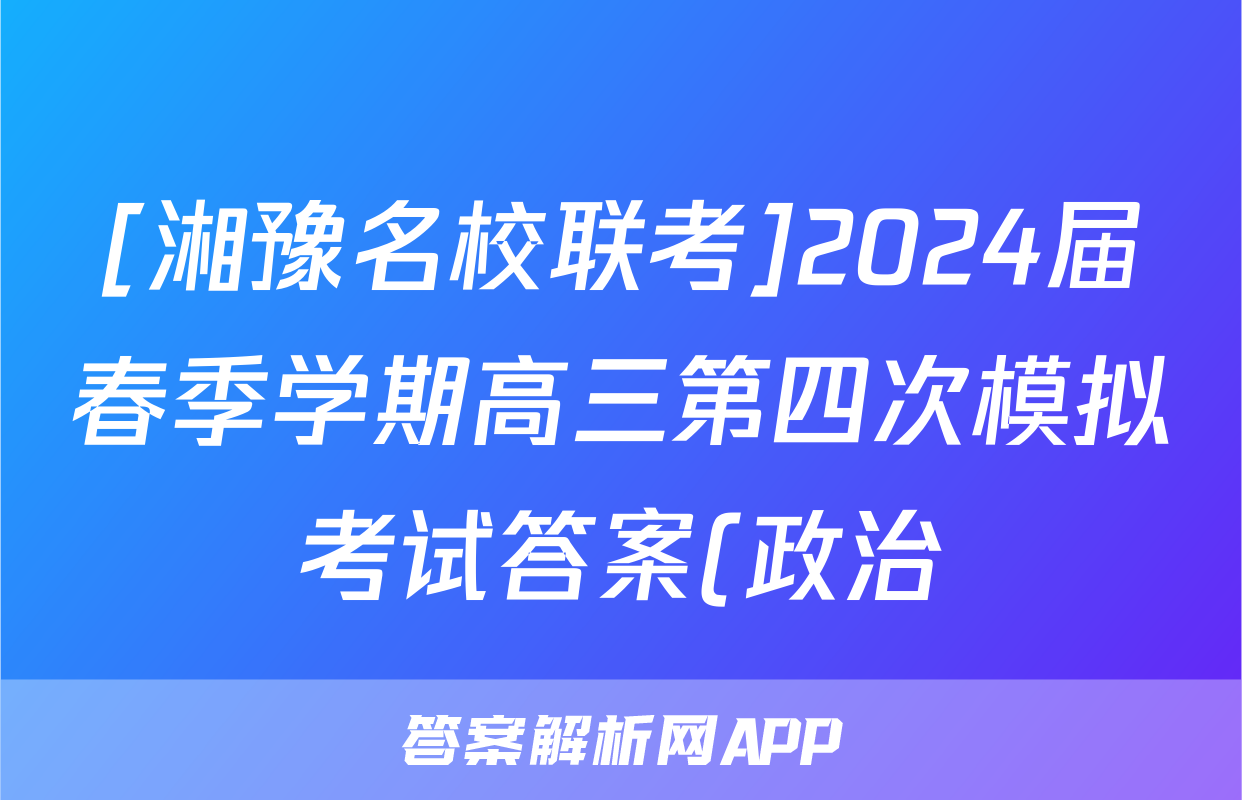[湘豫名校联考]2024届春季学期高三第四次模拟考试答案(政治)正在持续更新,目前2024-2025衡中同卷答案网为大家整理了相关试题及答案,供大家查缺补漏,高效提升成绩。